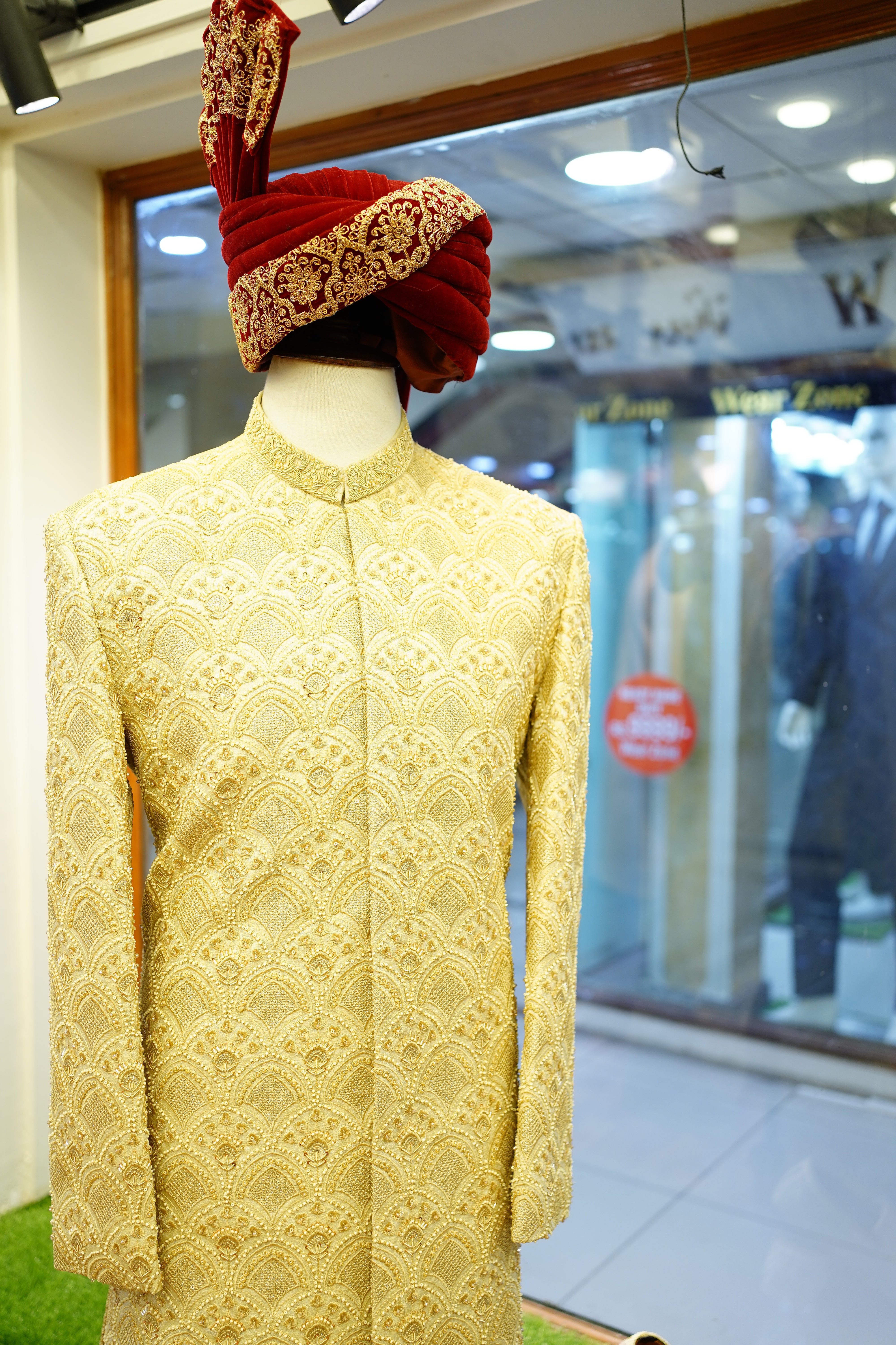 Royal Golden Groom Sherwani – Full Hand Embroidered with Turban & Khoosa