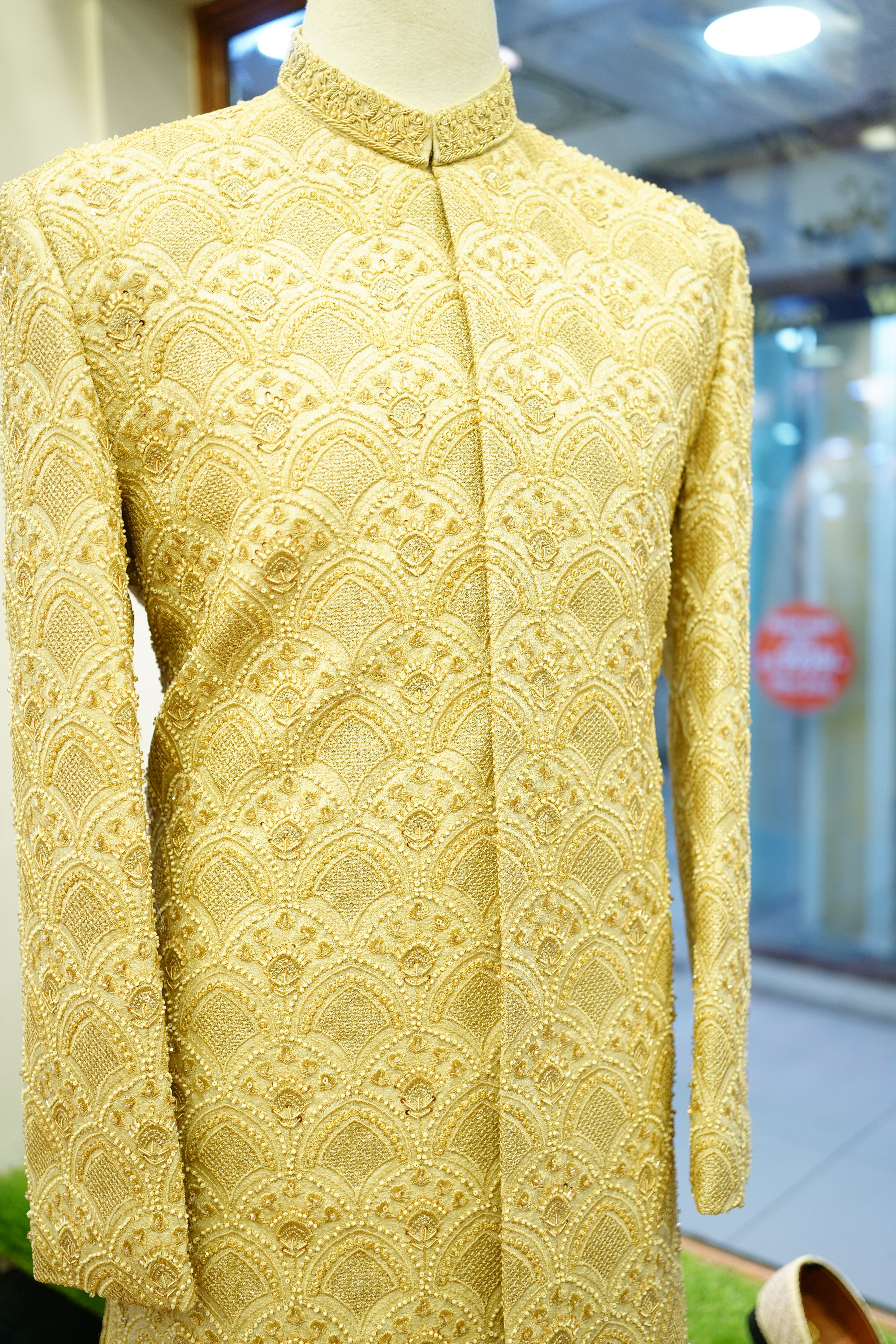 Premium golden fabric with rich hand embroidery
