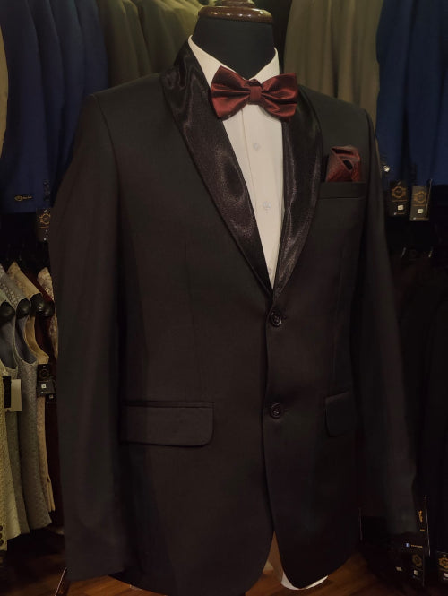 A refined look with a touch of bold contrast, this black slim-fit suit offers timeless elegance with a modern twist. Ideal for weddings, receptions, and formal occasions where every detail matters.