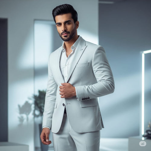 A modern take on wedding elegance, this pearl white suit set delivers a fresh, polished look for the groom or any formal occasion. Its slim fit and crisp tailoring create a striking presence without overpowering.